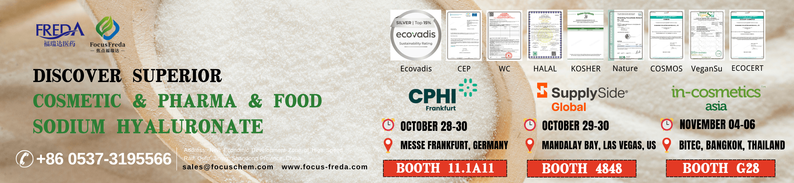 Focusfreda brings Rejuvenating 400, Full Spectrum Sodium Hyaluronate, Zinc Hyaluronate, Oil-dispersed Sodium Hyaluronate, and Cross-linked Sodium Hyaluronate to in-cosmetics Asia 2025 Bangkok, empowering APAC beauty brands with targeted skincare ingredient solutions.